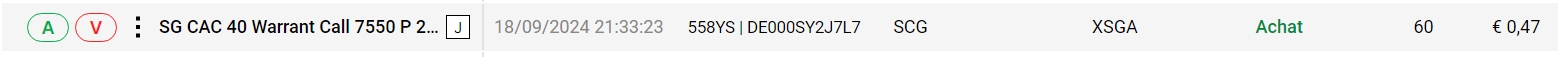 Achat : Call Cac 40 7750 18/10 ( 562YS) Ach 100X 0.50 (50 euros)